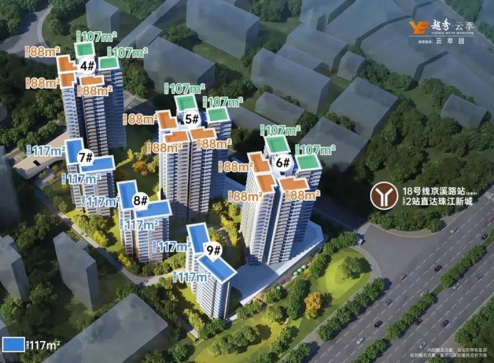 户型方面,越秀云萃也参考了越秀云悦,计算有建面约88㎡、107㎡、117㎡的新规户型,使用率在120%把握。