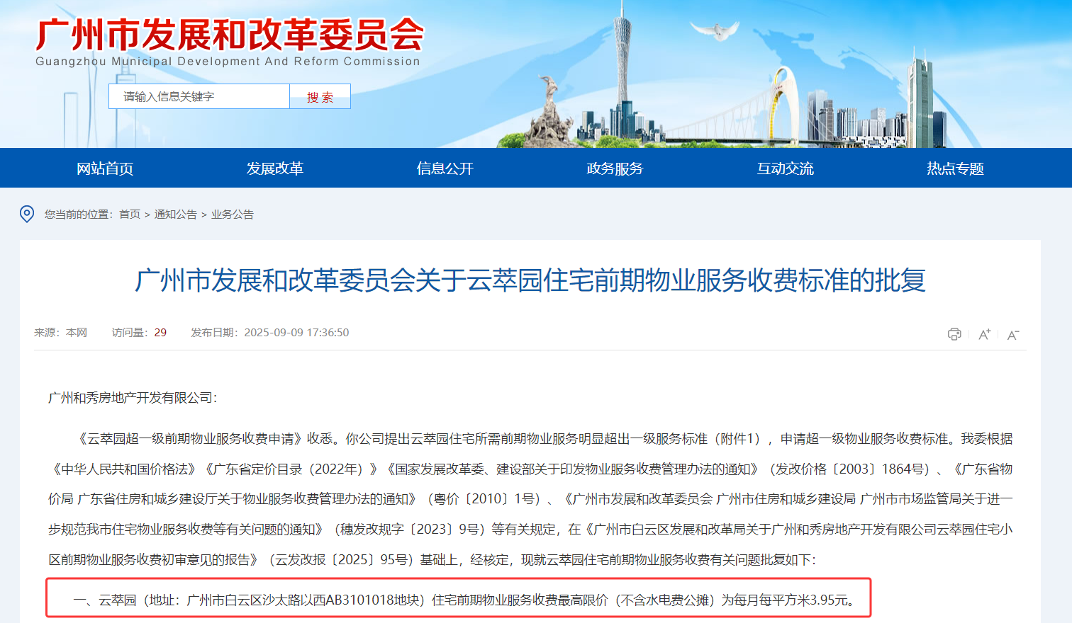 粤进深 严明会 9月9日足彩看盘app推荐,广州市发展和更正委员会对于越秀云萃(备案名:云萃园)住宅前期物业作事收费范例的批复。